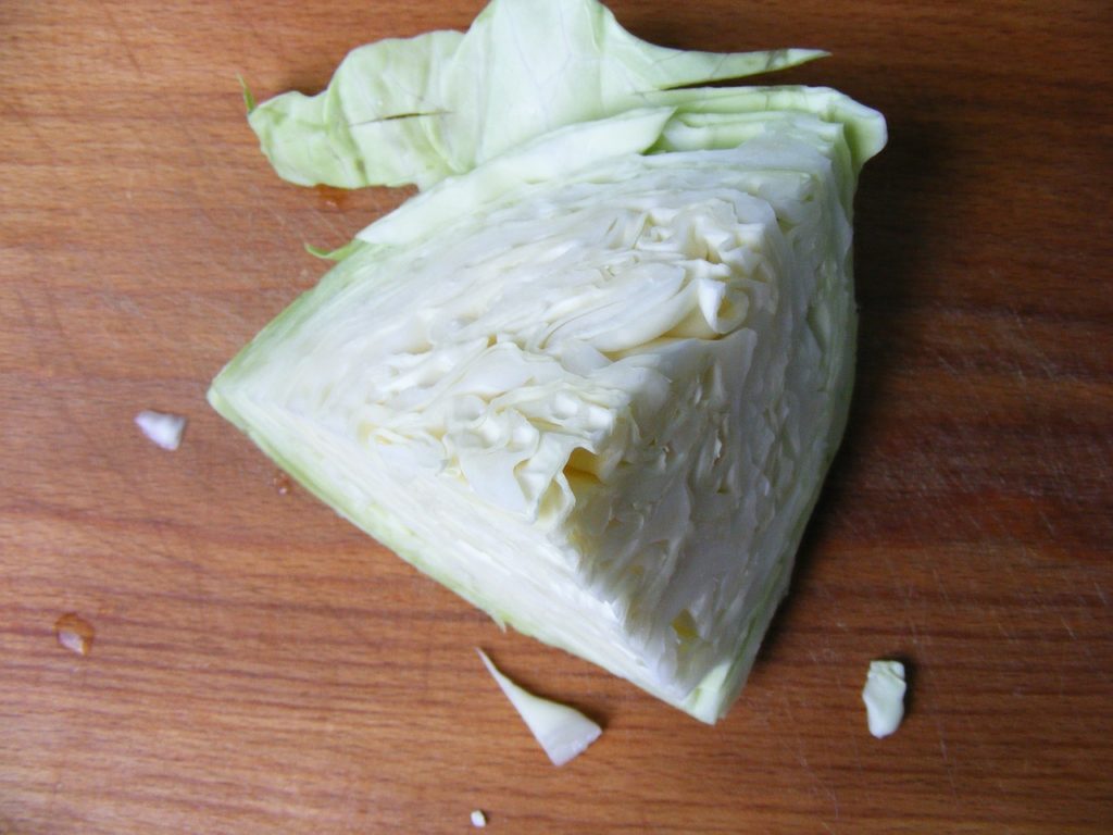Umyj kapustę. Pokrój na mniejsze kawałki. Umieść w garnku i zalej wodą.