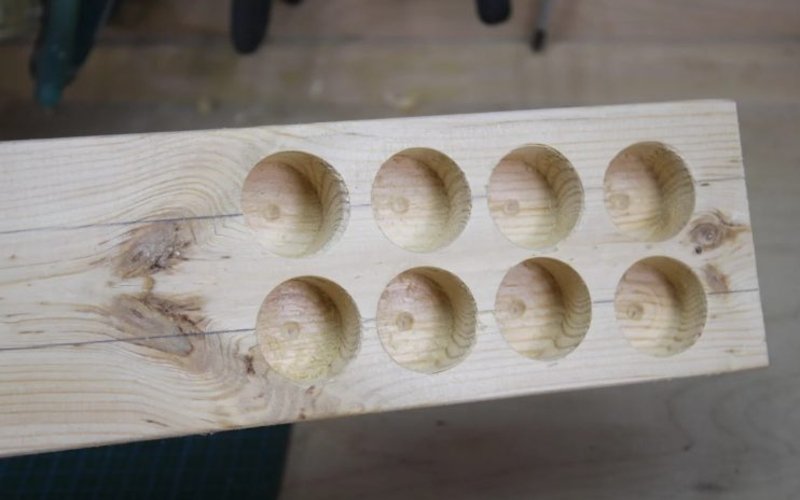 Oznacz na klocku miejsce do wywiercenia otworów ołówkiem. Najlepiej, aby były one trochę większe niż średnica Twojego największego orzecha, ponieważ orzechy mogą różnić się między sobą.