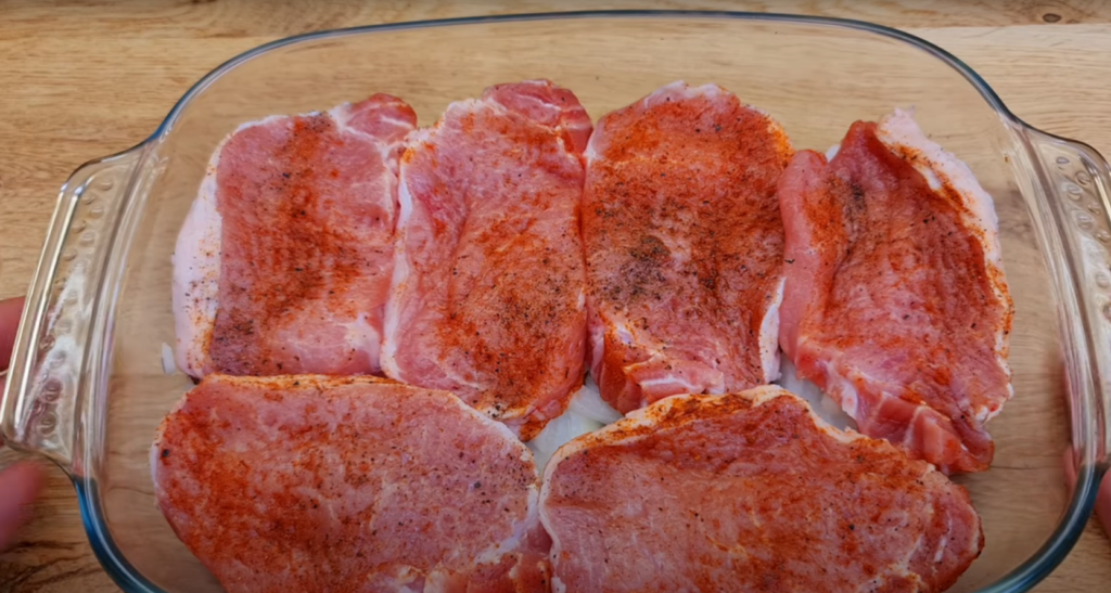 Przygotuj naczynie żaroodporne i wyłóż na spód pokrojoną w piórka cebulę. Doprawione mięso jest następne. Ułóż je na cebuli.