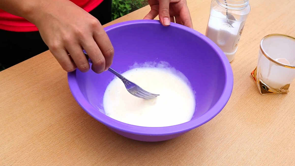 W misce widelcem wymieszaj jajko i kefir na gładką masę, dodaj szczyptę soli.