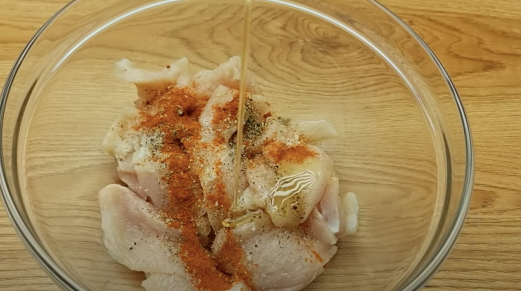 Dopraw mięso solą, pieprzem i papryką – dodaj olej i dobrze wymieszaj.