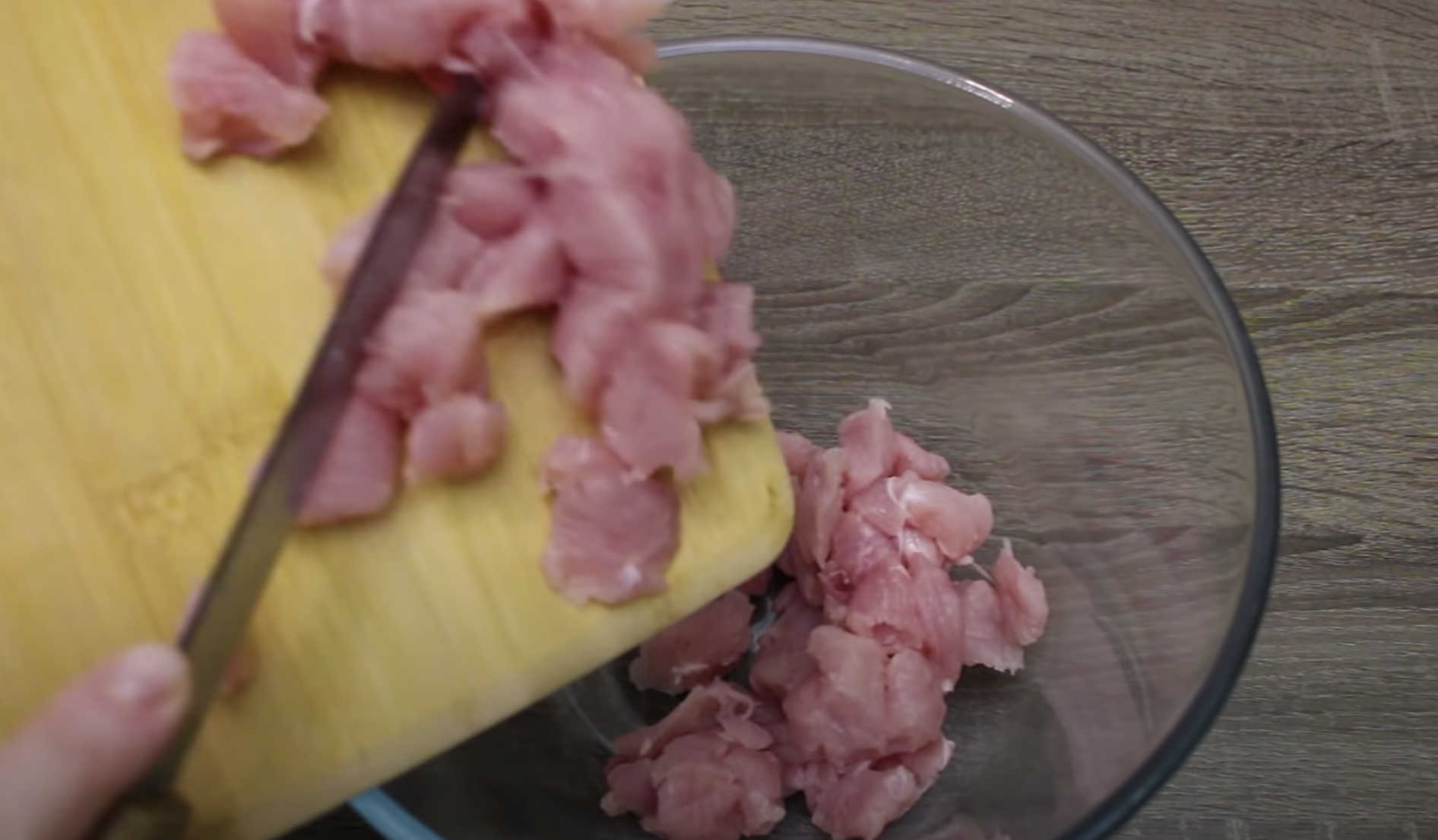 Kurczaka umyj, osusz i drobno posiekaj.
