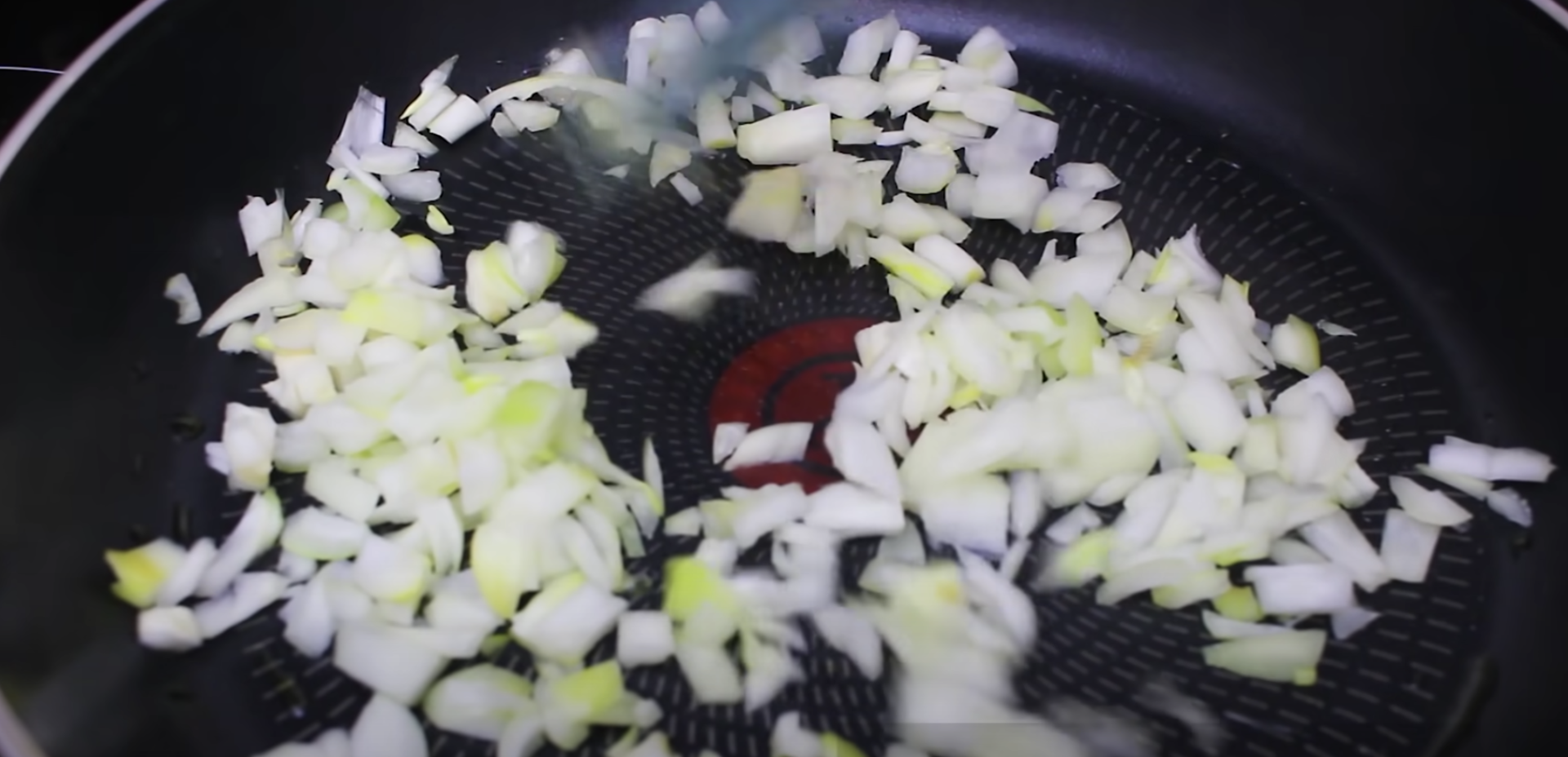 Drobno posiekaj także cebulę i podsmaż na niewielkiej ilości oleju na złoty kolor.