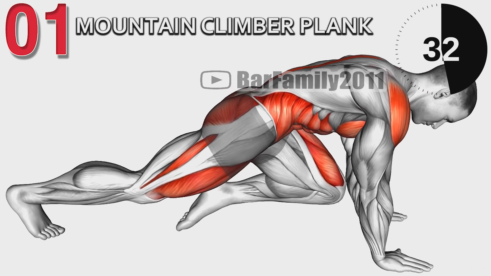 Ruszaj z pozycji deski, przeciągając naprzemiennie kolana do przeciwnej ręki, z wyprostowanymi ramionami i napiętymi mięśniami brzucha. Oddychaj regularnie przez 45 sekund.