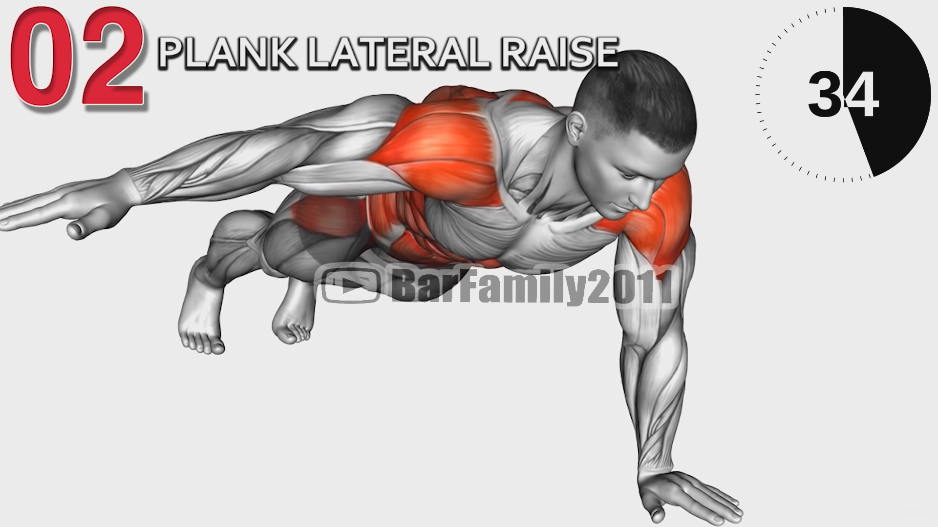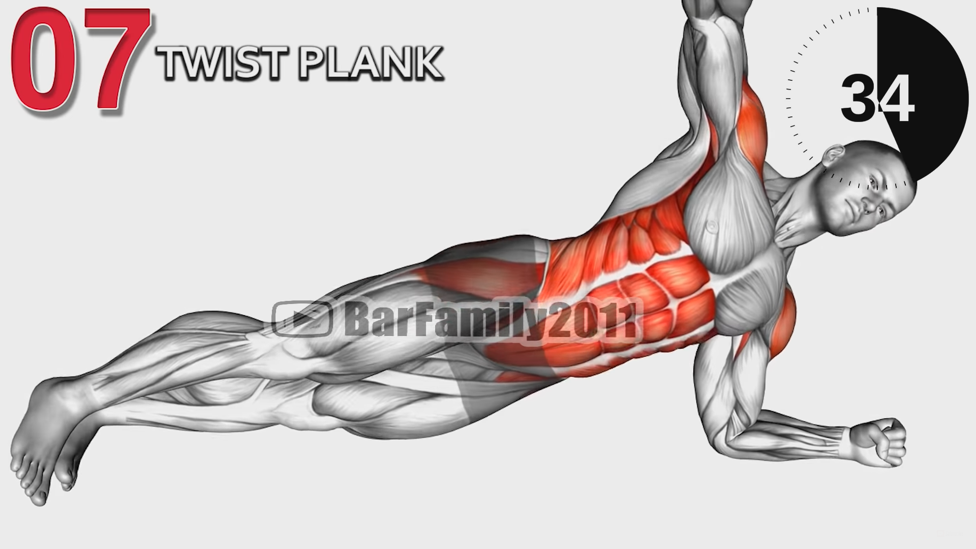 Opierając się na łokciach, obracaj ciało i podnoś ramię. Czas trwania – 45 sekund.