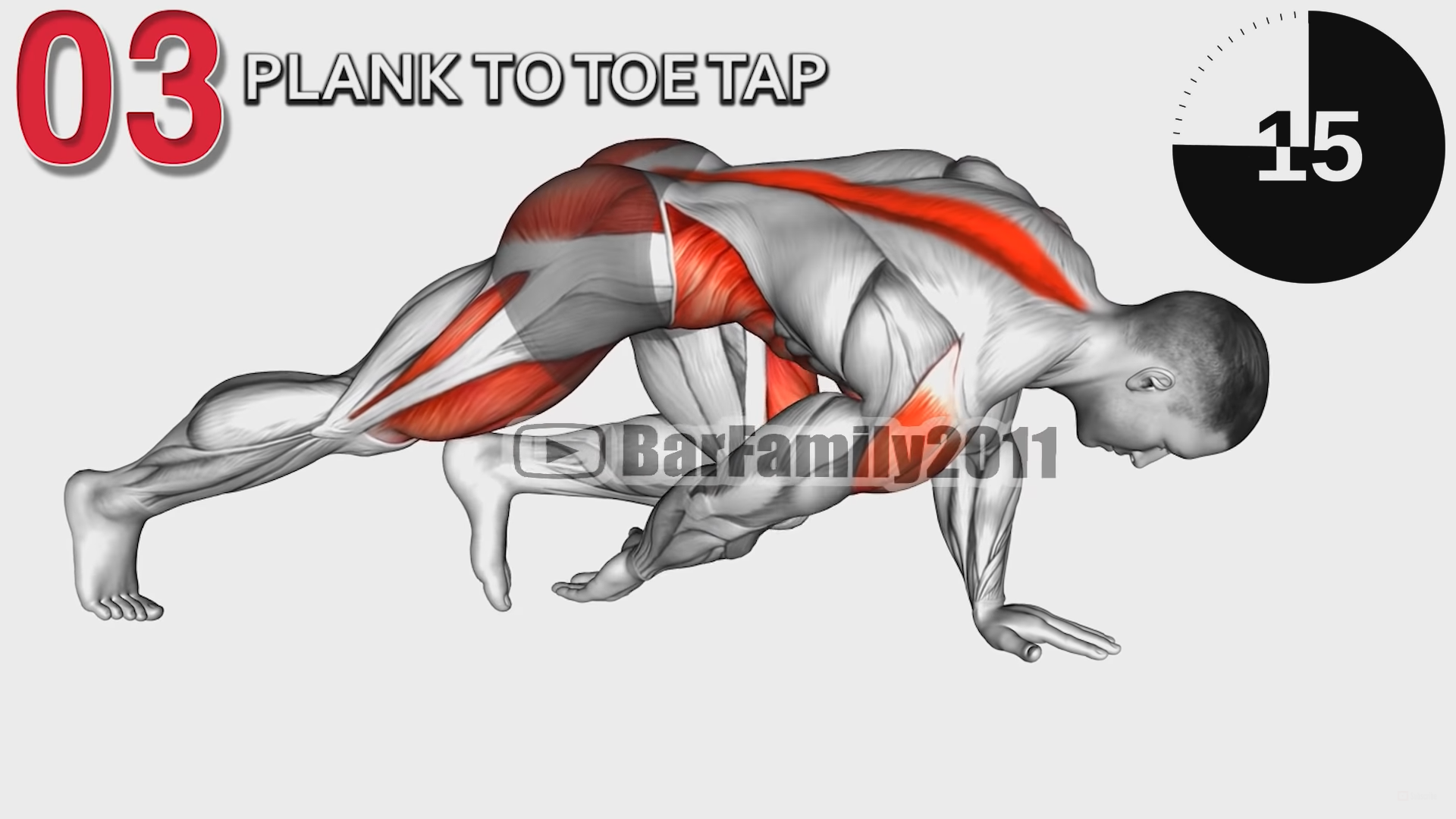 Staraj się dotknąć przeciwległego końca nogi, zmieniając strony, z napiętymi mięśniami i równomiernym oddechem. Czas trwania 45 sekund.