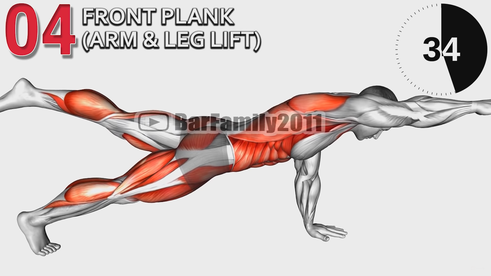 Z pozycji deski, podnoś przeciwną rękę i nogę, starając się zachować równowagę. Trzymaj mięśnie napięte i oddychaj równo przez 45 sekund.