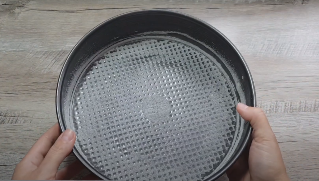 Przygotuj formę o średnicy 18 cm i wyłóż dno papierem. Boki wysmarować masłem. Nakładamy warstwę masy i wygładzamy.