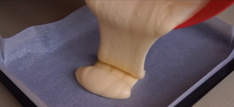 Przygotuj blaszkę wyłożoną papierem do pieczenia, na którą wylej połowę zawartości miski. Na wierzchu wylanego ciasta, za pomocą łyżeczki rozłóż ulubiony dżem.