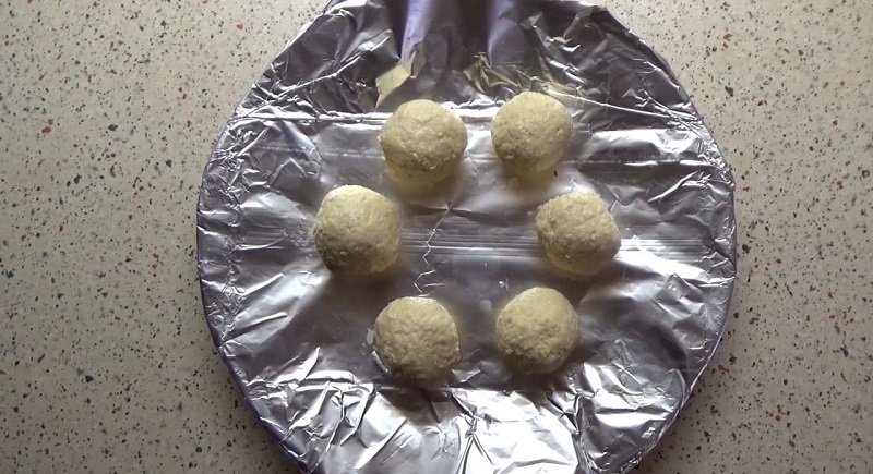 Po upływie tego czasu obtoczyć każdą z nich w czekoladzie i wiórkach kokosowych.
