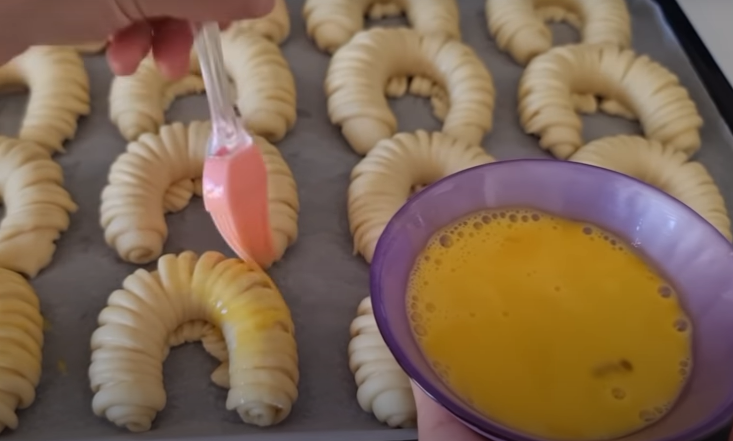 Przykryj bawełnianą szmatką i odstaw na około 15-20 minut. Następnie posmaruj je ubitym jajkiem.