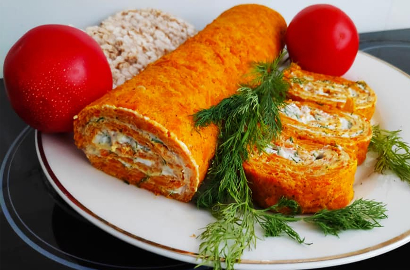 Apetyczną i niezbyt wysokokaloryczną roladę marchewkową można przygotować z różnymi nadzieniami. Słony jest idealny na przekąskę, słodki na deser.