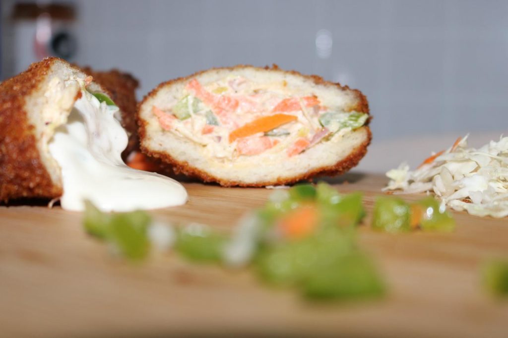 Ponownie zawijamy bułkę w jajku. Smażyć na złoto z każdej strony na oleju. Następnie możemy podać chrupiący przysmak.