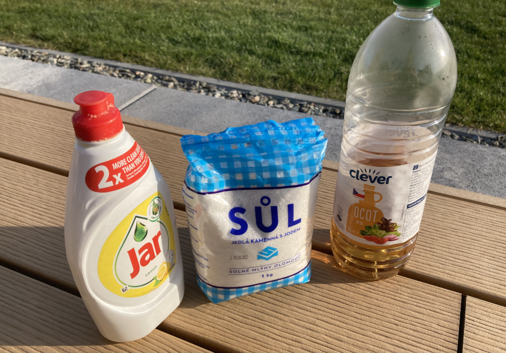 Potrzebujesz także butelki z rozpylaczem. Składniki nie są drogie, a przygotowanie kosztuje tylko kilka złotych. Jest to bezpieczne rozwiązanie nawet w miejscach, gdzie przebywają zwierzęta i dzieci, i nie odstrasza przydatnych owadów, jak pszczoły.