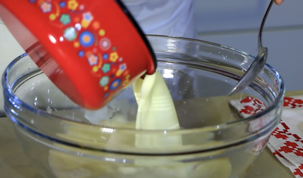 Wyrabiamy ciasto, przykrywamy i odstawiamy na dziesięć minut. W międzyczasie przygotujemy nadzienie: Białka ubić z cukrem na sztywną pianę. Następnie wymieszaj z orzechami włoskimi.