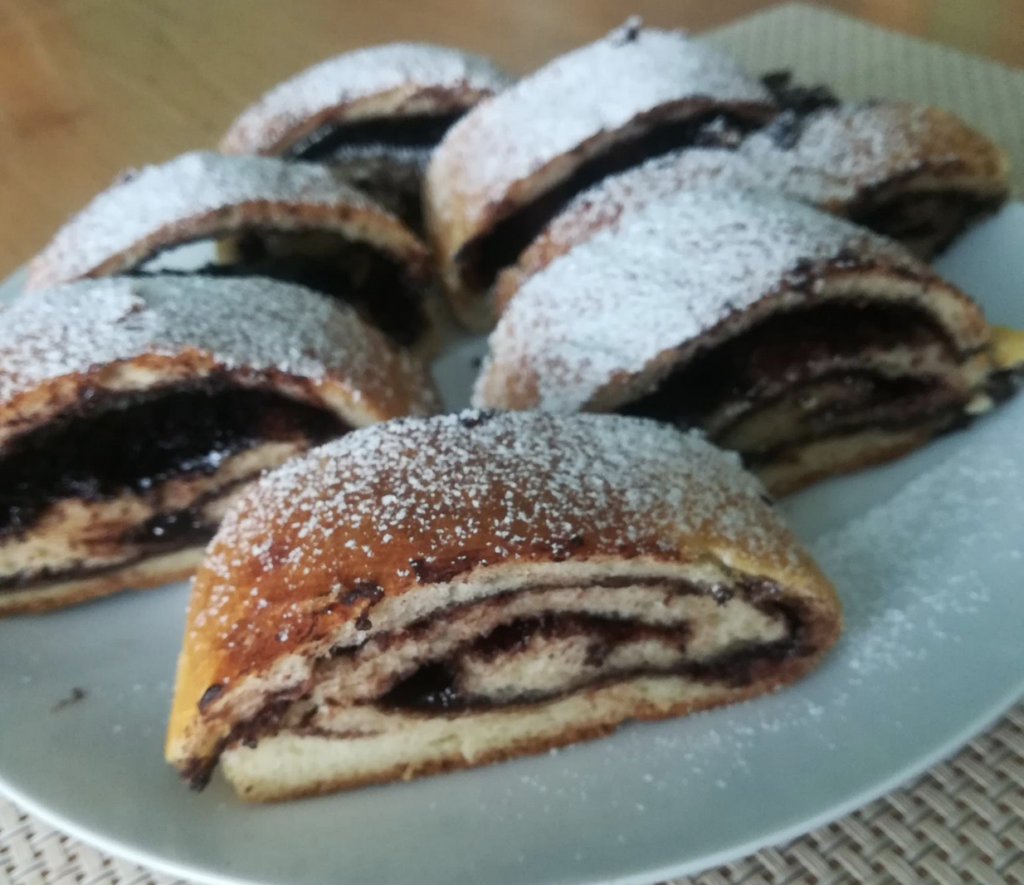 Aby ułatwić sobie wałkowanie ciasta, należy najpierw uformować je w prostokąt. Teraz możesz przygotować nadzienie. Wymieszaj składniki razem: Zetrzyj jabłka na tarce, dodaj cukier, cynamon i sok z cytryny. W osobnej misce połącz mak z cukrem. Ilość cukru pudru możesz dostosować do swoich upodobań smakowych w przypadku obu nadzień.