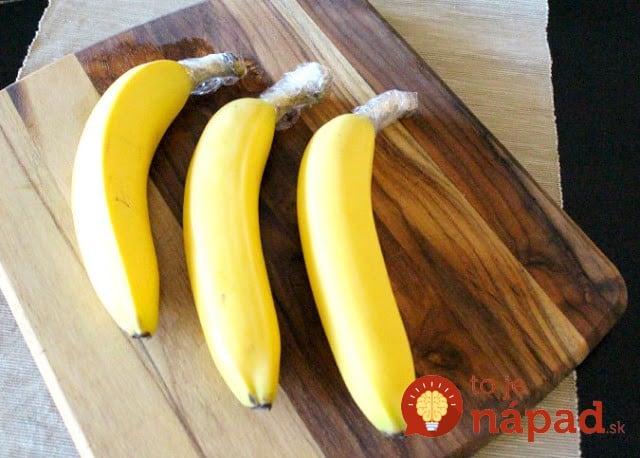 Zapobiegaj brązowieniu bananów, owijając ich końce w plastikową torebkę, aby spowolnić uwalnianie gazu etylenowego i proces dojrzewania.