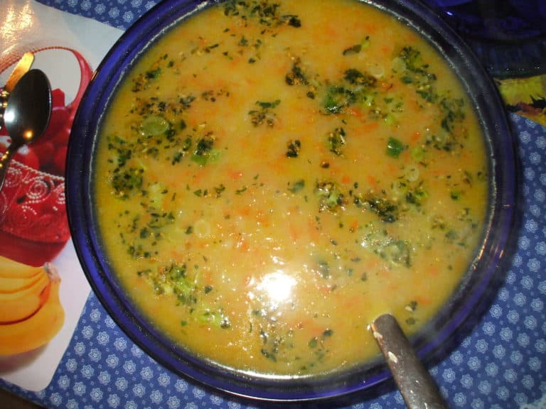 Ziemniaki obierz, umyj i pokrój w niewielką kostkę. Ugotuj w około 1,5 l osolonej wody. Dodaj przyprawy i olej. Kiedy ziemniaki zmiękną, do garnka dodaj przeciśnięty przez praskę czosnek i wymieszaj zawartość garnka ręcznym blenderem. Aby urozmaicić smak, przed podaniem posyp gorącą zupę startym żółtym serem.