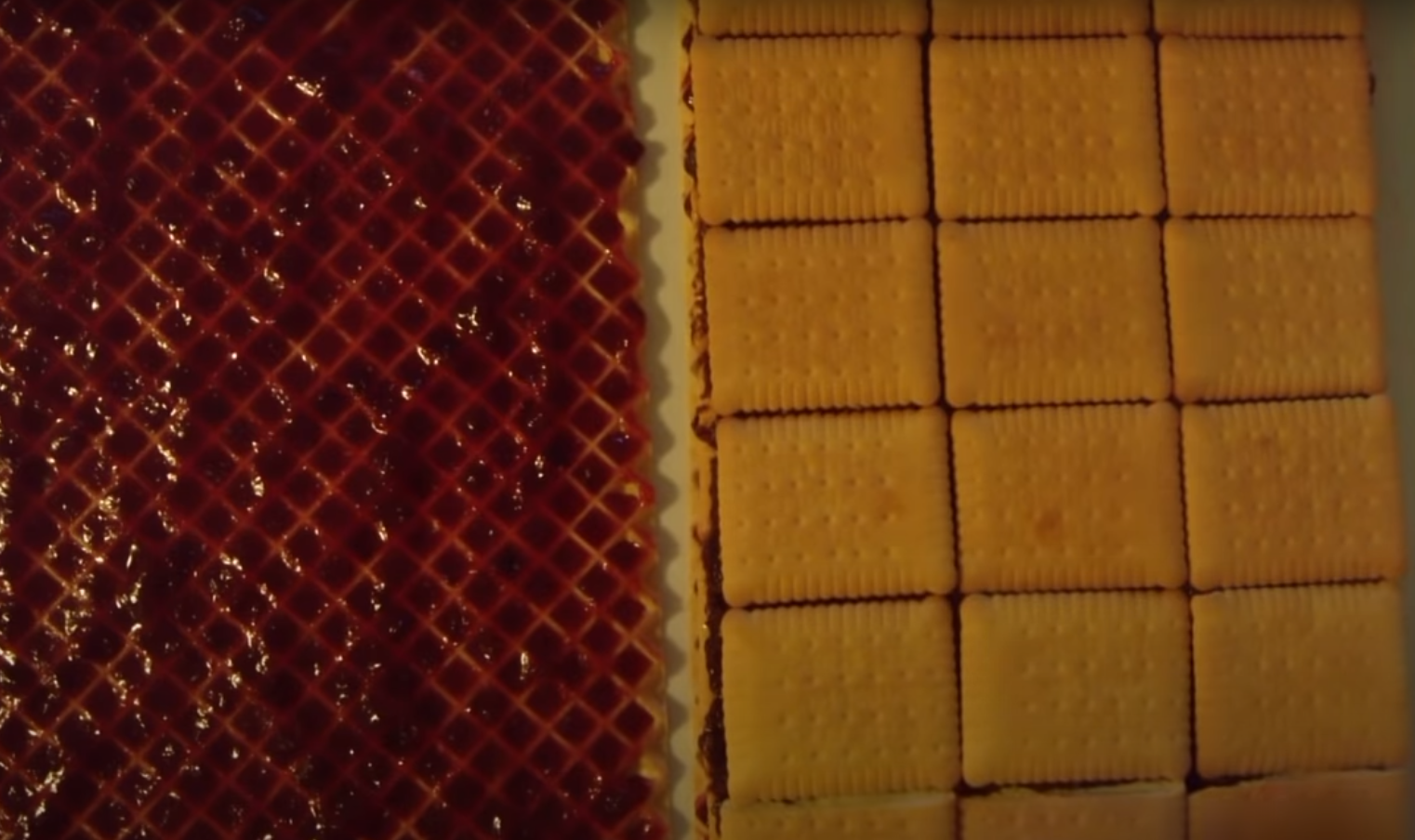 Herbatniki posmaruj przygotowaną masą, potem połóż na to warstwę herbatników. Następnie górę przykryj wcześniej przygotowanym waflem z dżemem.