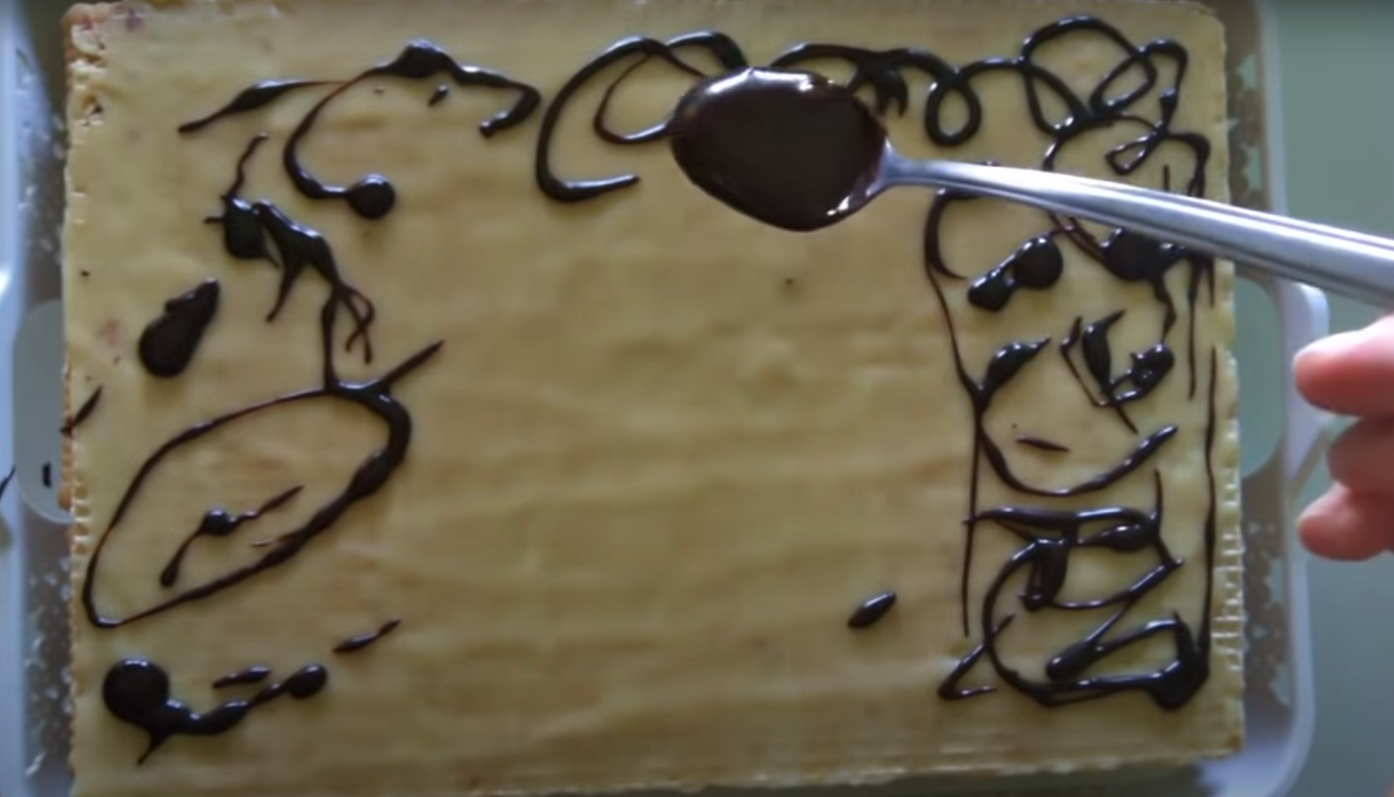 Na przyrządzonym deserze umieść coś ciężkiego, może to być np. deska i włóż na 2-3 godziny do lodówki. W tym czasie przygotuj lukier.