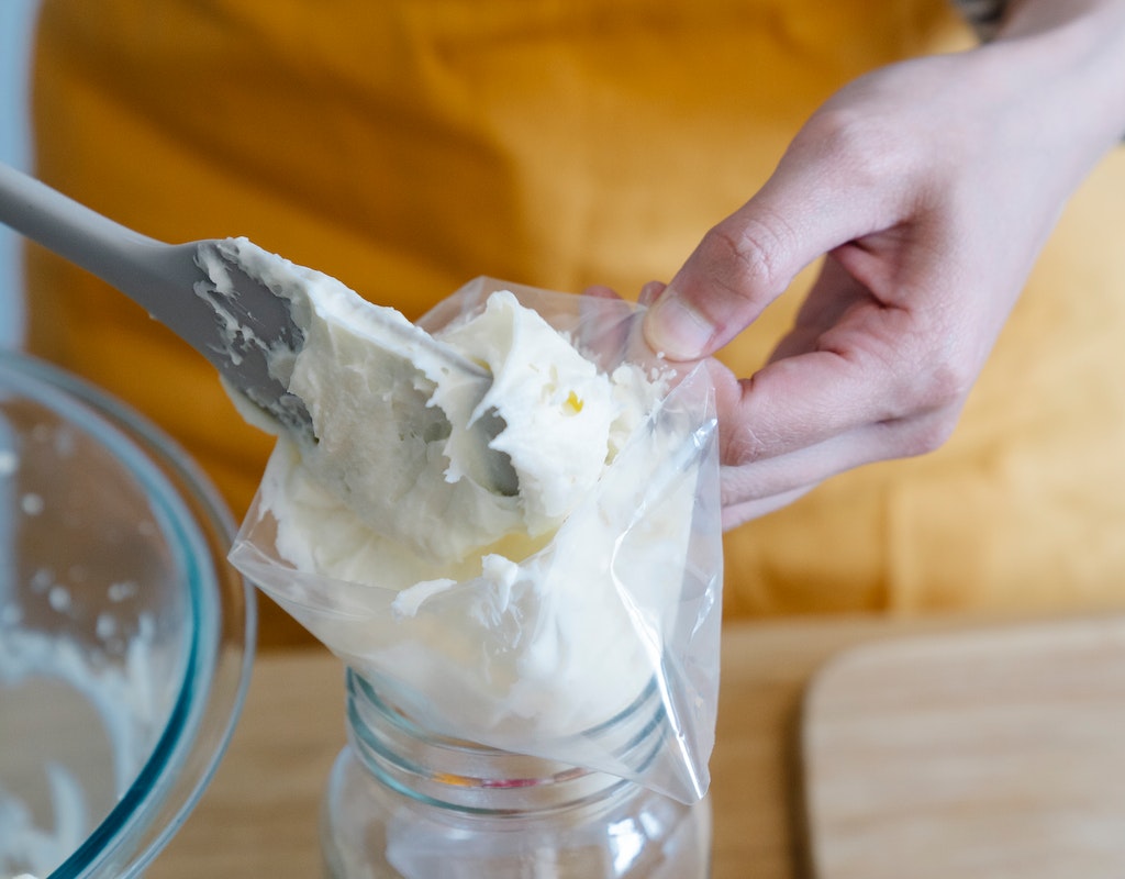 Ubijaj do uzyskania kremowej konsystencji. Ciasto przełożyć warstwami do ozdobnej torebki.