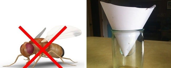 Następnie, muszki owocówki. Kiedy sezon na nie nadchodzi, owady te zaczynają nas denerwować. Nie cierpią one octu jabłkowego, więc możesz to wykorzystać. Wlej ocet jabłkowy do szklanego pojemnika, dodaj przejrzałe owoce i zrób lejek z twardszego papieru, ustawiając go na pojemniku. Po kilku godzinach zauważysz, ile owadów złapałeś.