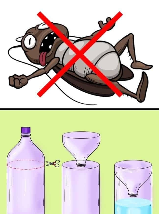 Zacznijmy od karaluchów, które najczęściej przyciąga pożywienie i woda. Zablokowanie dostępu do tych zasobów sprawi, że opuszczą Twój dom. Jednakże, by poradzić sobie z tymi przebiegłymi szkodnikami, zastaw na nie pułapkę. Potrzebujesz do tego pustą butelkę plastikową – odetnij górną część, zagnij ją jak na rysunku, przymocuj taśmą klejącą i wlej odrobinę wody. Karaluchy, zwabione zapachem wody, wpadają do pułapki, ale nie potrafią się wydostać.