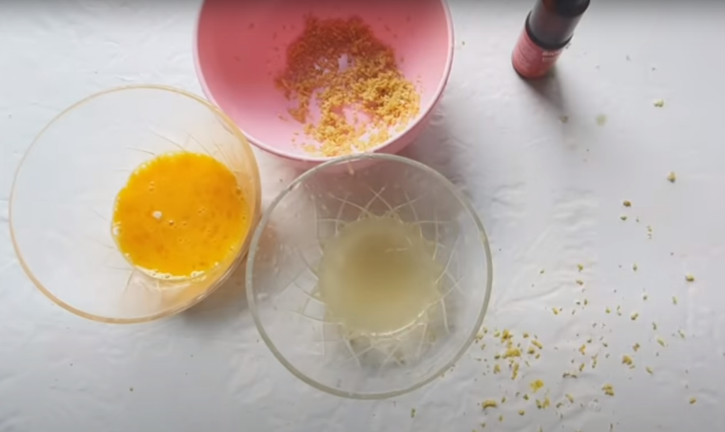 Przejdźmy więc do wykonania naszej odmładzającej maseczki. Na pierwszym miejscu należy zetrzeć skórkę z cytryny na tarce, na niezbyt dużych oczkach. Kiedy cała skórka zostanie starta, zabieramy się za krojenie jej oraz wyciskanie jej soku. W osobnej miseczce należy widelcem ubić jajka.