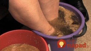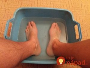 Potrzebujesz 2-3 litrów gorącej wody. Wymieszaj zwykłe mydło w kostce, sodę oczyszczoną, sól morską i 10 kropli jodu. Moczyć stopy przez 15 minut. Po 3 zabiegach poczujesz ulgę.