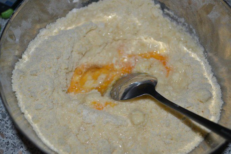 Starty na drobnych oczkach ser dobrze wymieszaj ze śmietaną i pozostałymi jajkami.