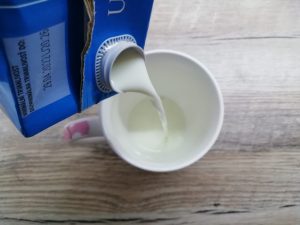 Do powstałej mieszanki dodać mleko i mieszając połączyć razem.